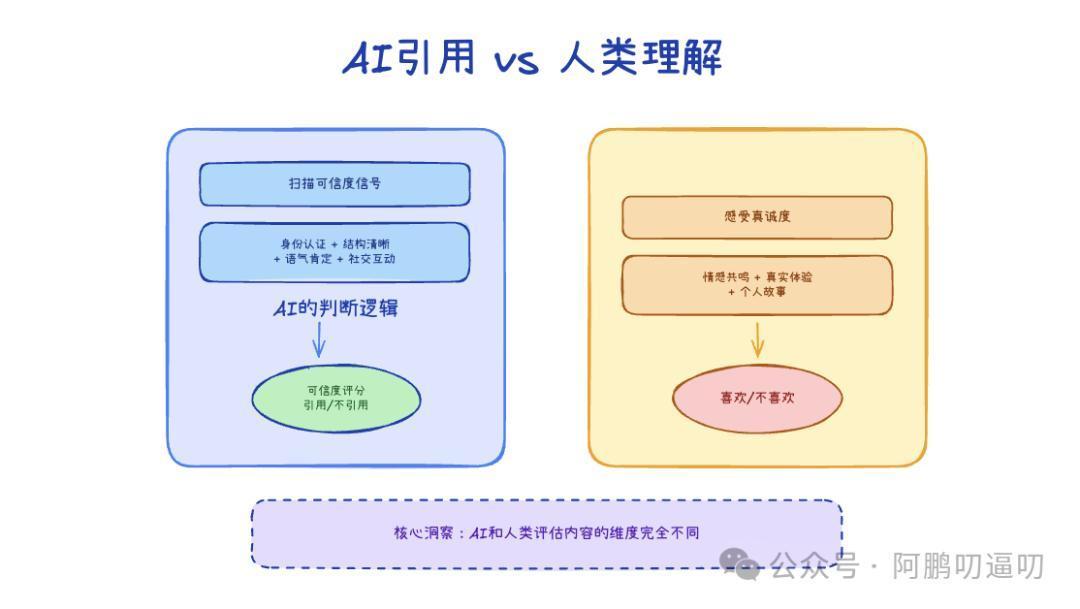 这不是说真诚没用。真诚对用户有价值,但对AI的引用算法没有直接价值。